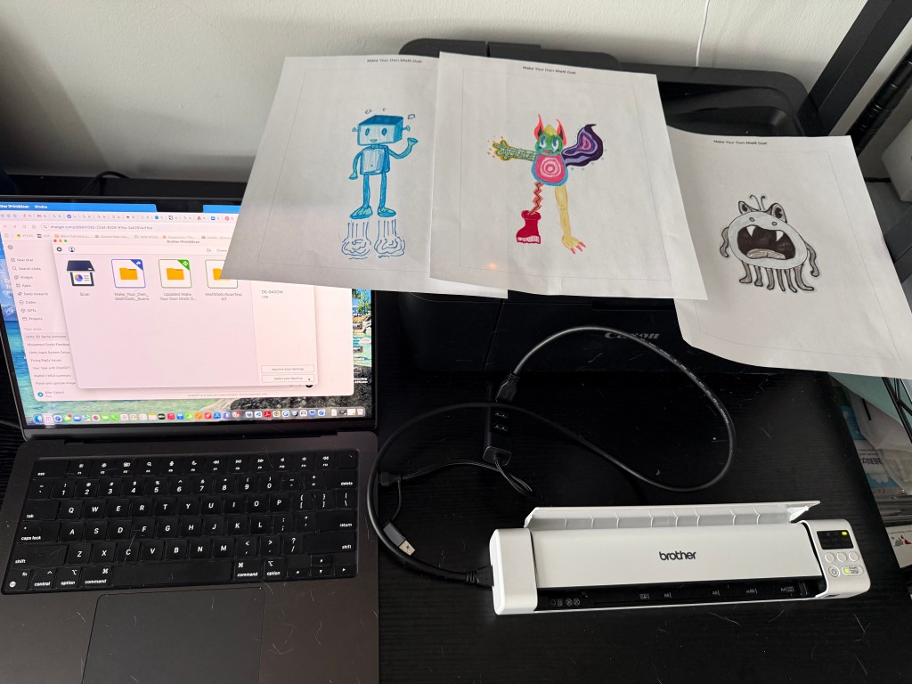 I took a break from developing the virtual environment for the MisfitDollz: XR Experience and began to test scanning and rendering the ‘Make Your Own Misfit Doll’ template prototype. I created three examples to test with a small portable scanner and using the scanner’s compatible software, I made sure that the new scans automatically relocated to the ‘Scans’ folder in my Unity project. Since my plan is to remove the background to only show the sprite, I explored both options on the scanning application and options within Unity to execute this successfully.